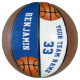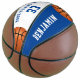 Custom Basketball with Player Name Team Number. Personalise it with team name, player number and name. The design has two basketballs images on the left and the right side on blue and white background. A great keepsake and a gift to remember the favourite sport.