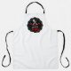 This custom "BBQ" apron features a black badge with cooking tools an flames.
