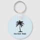 Custom Beach Palm Tree Nautical Blue Stripe Key Ring