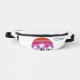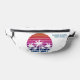 Cute custom beach sunset fanny pack for a destination wedding or family island trip near the ocean. Cool personalised gift featuring tropical palm tree and pretty pink and blue horizon.