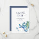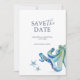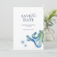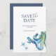 These custom beach wedding announcements feature a watercolor octopus with starfish in nautical shades of blue. The words "Save the Date" are set in elegant typography. Use the template fields to DIY your personalised information. A unique choice for coastal wedding date cards. To see the complete collection visit www.zazzle.com/dotellabelle