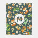 Custom beautiful script safari nursery raccoons pattern navy blue fleece blanket for kids.