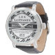 A bold, black and white custom personalised beer brewing themed watch face for businesses or homebrewing couples. Add your own text to personalise it! Plant background looks like barley, with an old fashioned sign board style plaque and easy to read lettering.