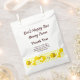 A custom small business bag with editable large text on top for your business name and message, and smaller text on the bottom for your address or other info, and vintage art of honey bees on a honeycomb. It is easy to change fonts, background colours, upload your logo, even save your design for later.