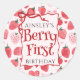 Custom Berry First Coquette Pink Bow 1st Birthday Classic Round Sticker