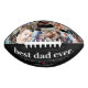 Modern fathers day football gift featuring a photo collage of 12 family pictures for you to replace with your own, the saying "best dad ever.", a personalised thank you note, a cute red heart, and your childrens names.