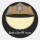 Best Sheriff Ever cartoon sheriff head with brown sheriff hat with silver sheriff star and text you can edit! Best Sheriff Ever default text, change the font size, colour and style!