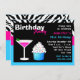 Custom Birthday Cocktail Party Pink & Blue Zebra Invitation