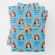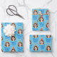 Customise this blue wrapping paper with a friend or family member's face. Further personalise the gift wrap with their name and if you'd like, add their birthday age. For best results, add a close up photo of their full face and hair. Prior to uploading the photo, crop the photo into a square and leave a little bit of background around the head in the photo. Make sure the head is centred in the photo. This will ensure that the face lines up correctly with the party hat.