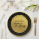 Custom Birthday Party Plates, Modern Black Gold Paper Plate