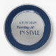 Custom Birthday Party Plates, Modern Blue Silver Paper Plate