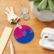 Basic Button Keychain with bisexuality pride flag with pink, purple and blue stripes, striped pattern design with hearts design