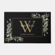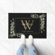 Custom Black And Gold Monogram Greenery Floral Doormat