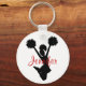 Custom cheerleader's key chain, with graphics of a black silhouette of a jumping cheerleader. Custom red script text is customisable to read what ever you want. Great little gift for any age cheerleader.
