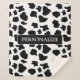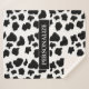 Black and white cow spots pattern fleece Sherpa Blanket. Funny animal print design for bed or sofa. Personalised text for family name or quote. Cool Christmas or Birthday gift idea for friends, family, sister, wife, girlfriend, mum etc. Soft cosy blankets for snuggling up. Add your own surname, monogram or quote. Available small, medium and big size. Great for rustic western cowboy interior.
