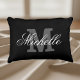Custom black and white monogram accent pillow. Stylish script typography template with vintage name initial letter. Elegant home decor cushion for sofa, couch or bed. Trendy design for dorm room, bedroom, living space etc. Customizanle background and font colour.