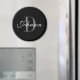 Custom black and white monogram large round fridge magnet. Elegant script typography template for name or surname. Classy gift idea for friends, family, coworker, clients, employee, customers, visitors, wedding guests etc. Add your own business name optionally.