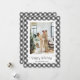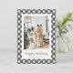 Custom black and white plaid photo holiday cards featuring a black and white chequered pattern. Easily personalise these gingham check photo holiday cards with your photo and family name.