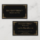 Custom Art Deco wedding planner business cards with golden frame and customisable text, printed on black background