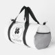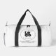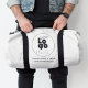 Custom Black Business Logo On White Duffel Bag - Simply upload your black or dark coloured company logo graphic or image to this template with two lines of customised text