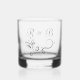 Celebrate your love with this elegant whiskey glass, featuring your name monograms or initials in a simple sophisticated typography script style, framed by a classy botanical floral and leaves foliage motif. This personalised cocktail glass is perfect for bridal or bachelorette parties, weddings, anniversaries, or any special occasion. Toast to your happiness with your guests with this beautiful and unique party favour gift that will make your memories last forever.