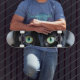 Custom Black Cat Eyes Kitty Pet Photo Skate Deck