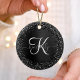 Custom Black Glitter Sparkle Monogram Ceramic Tree Decoration