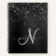 Custom Black Glitter Sparkle Monogram Notebook