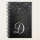 Easily personalise this trendy elegant planner design featuring pretty black sparkling glitter on a black brushed metallic background.