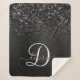 Custom Black Glitter Sparkle Monogram Sherpa Blanket