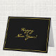 Solid black background with a thin gold border and "Happy New Year" in an elegant gold script decorate the front of this greeting card. The inside message can be changed or removed. The back is also solid black with matching border and gold "Cheers" and name. Easily change or remove text to make it yours using the Template provided. White envelope is included or mark "none" for reduced price. 5"x7" is also available. Highly rated and excellent print quality. See "About This Product" at side for more information.