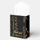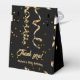 This custom black and gold thank you favour box is decorated with faux gold curly ribbon and confetti stars. It says Thank You in script typography and this can be customised to a different message if you wish. Also, the event name says Melanie's 30th birthday party, but you can personalise it to any event and name. The guests will appreciate this parting gift.