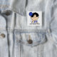 A little black haired boy with a blue balloon and blue shirt on a button you can customise with your choice of text, his name, and age! Perfect for all who are attending the birthday party!