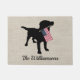 Awesome welcome doormat featuring a black lab holding an American flag and your name or custom text. Perfect for dog lovers!