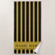 Custom Black M Gold Striped Beach Towel with Name