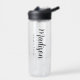 Custom clear water bottle featuring your first name displayed in a bold, black script with your last name displayed in modern lettering below. The simple, personalised water bottle can also be used to display your organisation or business name.
