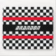 Beautiful contemporary image of auto racing checkers flags design with red no-go stripes. With room to customise with name, monogram or initials of your choice. Whimsical hipster design for the stylish race car sport lover, or racing fan.