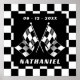 Cool black and white racing chequered pattern design. With room to customise or personalise with a name and birth date of your choice. This whimsical stylish hipster design is made for the race car and motorsport sport lover, go-kart racing fan, dirt bike champ, and anybody else who loves car, motor and auto sports.
