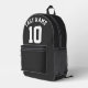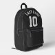 Custom Black White Last Name Sports Jersey Number Printed Backpack