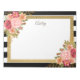 Elegant custom 8.5"x11" notepad with black and white stripes and pink and gold floral.