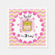 Blonde Princess 3rd Birthday paper napkins features a little princess with blonde hair wearing a golden jewelled tiara surrounded by pink flowers, text that reads I'm 3 Today, a border of chevron stripes of hot pink, light pink, gold, and white, and an area you can personalise with her name! The third princess birthday party will be off to a great start with these colourful princess paper napkins. Look for the matching princess 3rd birthday paper plates, favour bags, T-shirts, buttons, bags, and more!