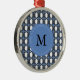 Custom Blue Abstract Scarab Pattern Monogram Metal Tree Decoration