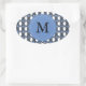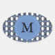Custom Blue Abstract Scarab Pattern Monogram Oval Sticker