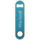 Colourful snazzy bartenders speed bottle opener done in a blue and green glitter look chevron pattern, with custom white 3D looking text, on both sides. Personalise the name to read what ever you want. Great gift idea.