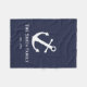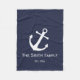 This midnight blue blanket has a white anchor. You can customise it with your desired text.