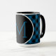 Beautiful contemporary black and blue diagonal chequered plaid pattern. Stylish rustic style mug with room to customise or personalise with your monogram.