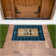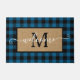 Beautiful contemporary blue and black chequered plaid pattern with friendly Welcome greeting written in an elegant stylish calligraphy font. With room to customise or personalise with family name monogram or initial of your choice. Original simple rustic style decor accent for decorating the front porch or doorstep of your country cottage house, log cabin, mountain lodge, fishing camp, lake or river vacation home.