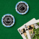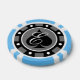 Custom blue casino poker chips for gambling party. Beautiful casino coin design with spade icon and elegant typography. Customisable marker colours. Available in blue, green, red, pink, yellow, orange and more. Personalise with custom name, unique monogram, initials, dollar amount or lucky number. Classy script typography. Luxury gift ideas. Also great as Las Vegas destination Birthday or wedding party favour gift. Double sided print.