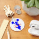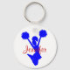 Custom cheerleader's key chain, with graphics of a blue silhouette of a jumping cheerleader. Custom red script text is customizable to read what ever you want. Great little gift for any age cheerleader.