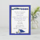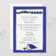 Elegant graduation party invitation, done with a white background and a blue and gold tone frame. Graphics of a blue and gold banner, across the top, and a diploma and blue mortarboard cap, on the bottom. Personalise the year and rest of the invitation's text to suit your party needs.